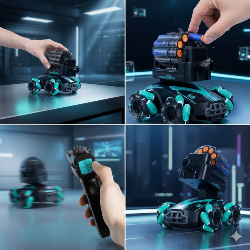 Este Tanque 4 en 1 multifunción es pura adrenalina: dispara dardos, lanza hidrogel, suelta burbujas y trae un modo de tiro al blanco. ¡Un solo juguete, mil formas de jugar! 😍